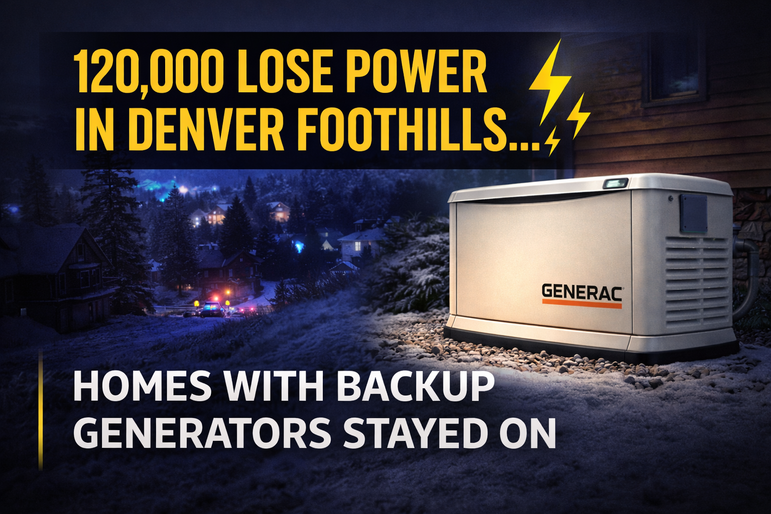 Keywords: Denver foothills power outage, backup generator Denver foothills, standby generator Evergreen CO, whole house generator Colorado, power outage Jefferson County, automatic standby generator Colorado